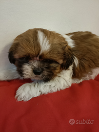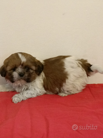 Cucciola di shih tzu con pedigree ENCI. Ha 2 mesi microchip e vaccinazioni. Genitori entrambi testati contro le malattie tipiche della razza. Cuccioli verranno ceduti con garanzia sanitaria sanitaria e passaggio di proprietà. Per ulteriori informazioni contattatemi anche whatsapp