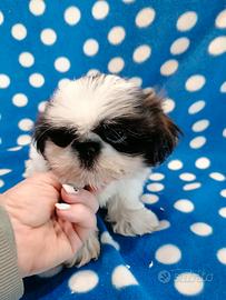Shih Tzu cucciolo taglia toy di colore bianco/testa di moro nato il 17/12/2025 1 maschio Madre 4,5 kg Per informazioni chiamate il 3-4-7-4-2-1-5-3-8-7 I nostri cuccioli vengono consegnati con : - Vermifugo fatto - Antiparassitari interni ed esterni fatti - due vaccini - Microchip - Libretto sanitario - Certificato di buona salute da parte del veterinario - Abituati a sporcare su la traversina - Ben socializzati - Abc del cucciolo - Cibo per i primi tempi - Prima toilettatura fatta - Certificato del deposito del campione biologico dei genitori - Certificato del grado di lussazione della rotula dei genitori - Albero genealogico dell'allevamento Su richiesta possiamo consegnare i cuccioli in tutta Italia e all'estero.