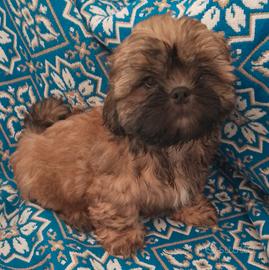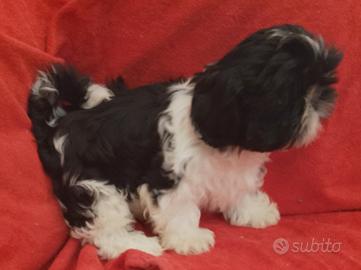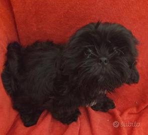 Sono disponibili dolcissimi cuccioli shih tzu (un maschietto nero, un maschietto marroncino ed una femminuccia bianco nero), nati e cresciuti in casa. I genitori sono entrambi visibili.