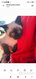 Cedo a malincuore cucciolo di siamese thai . Il gattino è maschio, nato in casa, abituato alla lettiera, genitori entrambi siamesi originali,(il gattino non ha il pedigree). Mangia crocchette e umido. È stato sverminato, da vaccinare. Recupero spese 250 €. Solo amanti animali. Per informazioni telefonare al 3440454544.