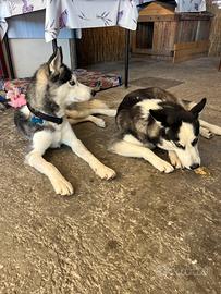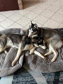 Per mancanza di tempo, Cedo Siberian Husky coppia di un anno. Molto coccoloni, vivaci, energici, giocherelloni. Vanno d'accordo con tutti, molto socievoli e amanti delle lunghe passeggiate. Adorano il mare e escursioni in montagna. Cerco qualcuno che possa prenderli entrambi perché sono molto legati fra loro. Tutti vaccini e controlli fatti e sono in ottima salute. Dotati di microchip e sistema gps. Pettorine personalizzate. Ovviamente, essendo cani, non li posso spedire, quindi solo ritiro e passaggio microchip a carico dell'acquirente ( in caso ci fosse un pagamento). Prezzo da concordare.