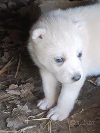 Disponibile ultimo cucciolo siberian husky nato il 5 gennaio. Occhi entrambi azzurri, verrà ceduto al compimento del 60 giorno con ciclo vermifugo completo. Genitori di mia proprietà.