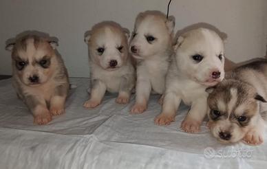 Disponibili su prenotazione 5 cucciole (1 riservato) di Siberian Husky bianchi e neri e color crema con genitori con pedigree linea Russa, esenti Da Displasia Anca e Gomito, Cresciuti In Contesto Famigliare Con Sport e attività Quotidiane I Cuccioli Verranno affidati a Famiglie Serie E Affidabili i cuccioli verranno ceduti al compimento dei 60 giorni completi di Libretto, ciclo vaccinale, sverminazioni iscrizione anagrafe canina possibilità di Kit puppy per qualsiasi informazione 3791687800 Massimiliano.