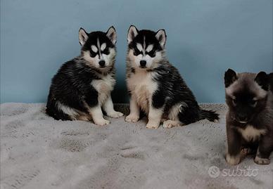 Cucciolata di husky con pedigree ENCI, maschi e femmine circa 50 giorni di vita. Facciamo consegne comprese nel prezzo dove con il cucciolo sarà consegnato anche libretto sanitario, microchip, sverminazione e prima vaccinazione. Facciamo rateizzazione a tasso zero! 3280342147