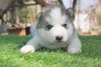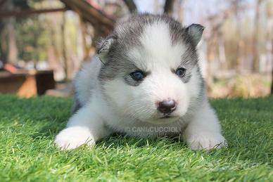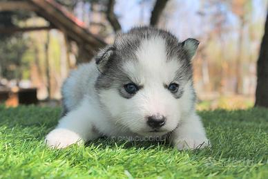 Ciao amici io sono Shiloh (nome indicativo) Sono un simpatico cucciolo maschio bianco e grigio di Siberian Husky ed ho circa 2 mesi di età. I miei fantastici occhi sono azzurri. Come fate a non innamorarvi?