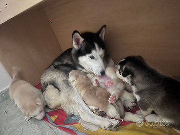 Vendo cuccioli di husky nati il 2 gennaio 3 maschi una femmina tutti cn occhi azzurri Madre bianco e nera il padre bianco e miele entrambi di mia proprietà i cuccioli verranno affidati al compimento dei due mesi di vita il 2 marzo