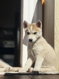 Siberian Husky femmina chiara con occhi azzurri. Già sverminata con primo vaccino e libretto, già svezzati. Hanno 60 giorni pronti a trovare una famiglia che li ami . Abituata con i bisogni in giardino.