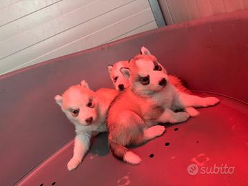 Cuccioli di 30 giorni di siberian Husky..... Si daranno a 60 giorni Con due vaccini ,sverminazione e libretto di buona salute .... Visibili anke da vicino Visibilità madre e padre