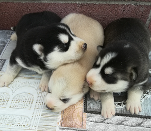Disponibili bellissimi cuccioli siberian husky bianco nero m e f .vengono ceduti sverminati vaccinati con microchip e trattamento antiparassitario a euro 450