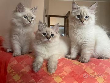 Cuccioli di siberiani neva masquerade nati e cresciuti in casa, abituati al contatto umano e con altri gatti; ideali per soggetti allergici in quanto gatti ipoallergenici.