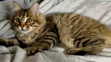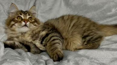 Altajskij Kraj Cattery cede gattino siberiano di 6 mesi Maschietto colore SIB n 24 (black spotted) Cucciolata di ottobre 2025 tra : WCF (World Cat Federation )European Champion Avrora Manchzhury e Cubrik Molaska Il gatto sarà ceduto con Pedigree L'Ente Nazionale Felinotecnica Italiana giuridicamente riconosciuta dallo Stato, dal Ministero delle Politiche Agricole, Alimentari e Forestali ( MIPAAF ) Esente da HCM e PKD Abituato alla lettiera Socializzato con umani anche bambini ed altri gatti. Il gatto in febbraio ha debuttato in Esposizione Internazionale con ottimi risultati, finalista Best in Show in entrambe le giornate Visibile previo appuntamento a Torino