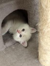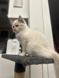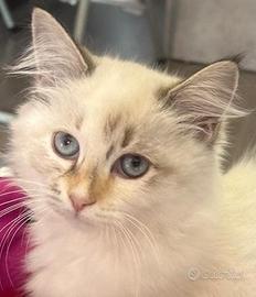 La gattina è molto affettuosa, coccolona socievole e chiacchierona, abituata anche a contesti familiari con bambini ed è già abituata alla lettiera e al tiragraffi.