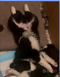 1 maschio bianco nero, 1 femmina bianco nera ed 1 femmina Red Collie. Papà red bordercollie con pedigree, mamma bianco nera meticcia Bordercollie. Rimborso spese 350 euro trattabili, con microchip.