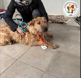 Sono un biondo di taglia medio grande di poco più di 1 anno, insomma sono un bel giovanotto! Vado d'accordo con i miei simili e sto imparando ad andare al guinzaglio ma soprattutto a fidarmi dell'essere umano..., ma sono bravo ed imparo in fretta....e poi ho un cuore grande e so donare tanto..tanto amore Sarò un compagno perfetto per le belle passeggiate, potremo divertirci insieme! Ti prego, non lasciarmi qui!