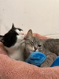 Queste due gattine si sono adottate a vicenda! Sissy, la più grande, adulta e Misty, la piccolina, ha 5 mesi. Si trovano nella stessa stanza del nostro piccolo rifugio e si sono piaciute sin dal principio. La più grande, Sissy, è una micia super affettuosa, coccolosissima e dolcissima. La più piccola, Misty, è una timidona che non dà molta confidenza all'inizio ma la si conquista con gli snack per gatti! Desideriamo che vengano adottate insieme. Sarebbe bello, anzi, meraviglioso! Chiamaci per queste due tesorine che si affidano vaccinate, sterilizzate, testate fiv e felv e microchippate. Si trovano ad Andria in Puglia ma si affidano nel nord Italia. Viaggiano con staffetta autorizzata sino al Nord. Chiediamo la massima serietà. Per informazioni: ADOTTAMI COL CUORE ODV 349 632 5688