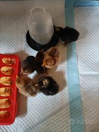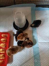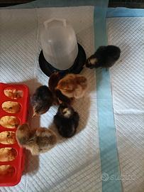 Accetto prenotazioni per pulcini con padre Cocincina nana e mamme Padovanine, Wyandotte nana e Isabrown (tutte perfette ovaiole). Cadauno 5 euro, per numero superiore a 5 pulcini farò 2 euro l'uno. Per info,contattatemi e vi dirò quando saranno pronti per voi e tutto ciò che vorrete sapere. Le mie galline e gallo son tutti liberi su più di 1000 mq di giardino,tutte sane e forti e allevate come una volta senza mangimi e senza antibiotici.
