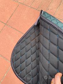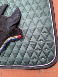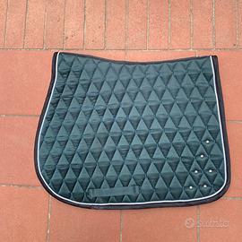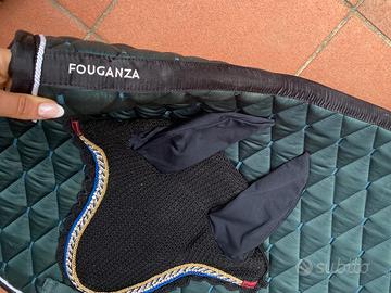 Sottosella verde con brillantini Fouganza utilizzato una sola volta. Ottime condizioni. Cuffietta Animo nera stupenda con cordino intrecciato e Swarovski in perfette condizioni.