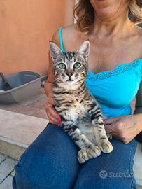 È un tigrottino con un manto particolare perchè ptesenta striature marcate e molto grandi tipiche di un tabby blotched.