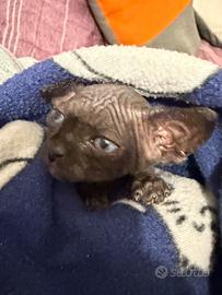 E ancora disponibile per la prenotazione una femmina di sphynx, la cucciola verrà ceduta a 90 giorni, sverminata con primo vaccino, microchip e certificato di buona salute. Genitori entrambi di mia proprietà testati filv felv hcm. NO PEDIGREE la cucciola cresce in un ambiente familiare amorevole, dal carattere dolcissimo, sia con bambini che con altri animali Per info whatsapp Grazia 3331187616