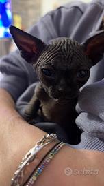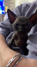 Disponibile ultima femmina di sphynx, nata il 21 dicembre sarà pronta per il ritiro a 90 giorni, la piccola a un carattere dolcissimo, adatta a famiglie con bambini e altri animali, sarà consegnata con vaccino, microchip, certificato di buona salute e kit personale. È possibile vedere anche i genitori entrambi di mia proprietà testati filv felv hcm, la piccola sarà consegnata già abituata alla lettiera, NO PEDIGREE x info whatsapp
