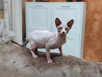 Si cede per problemi personali bellissima cucciola di canadian sphynx di 5 mesi bicolor occhi acqua marina.