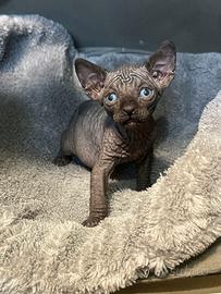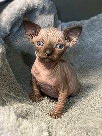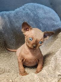 Disponibili indicativamente dalla prima settimana di maggio 2 bellissimi cuccioli di canadian sphynx sono due maschietti dolcissimi uno nero e uno chocolate mink. I cuccioli verranno ceduti al compimento dei 2 mesi con libretto sanitario, doppia sverminazione primo vaccino e certificato veterinario di buona salute. i genitori dei cuccioli sono entrambi di pura razza con pedigree esenti fiv felv e hcm. il papù dei cuccioli è cambione italiano di bellezza. se interessati a venirli a conoscere contattatemi
