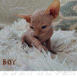 Disponibili alla prenotazione, con contratto di cessione, due cuccioli sphynx, un maschietto ed una femminuccia, nati il 23 ottobre 2025.