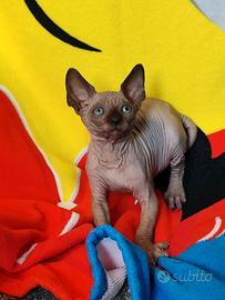 Disponibile indicativamente dal 5 di maggio cucciolo di canadian sphynx maschio colore chocolate mink. Il cucciolo potrà lasciare la mamma al compimento dei 2 mesi di età con libretto sanitario sverminazione e primo vaccino. Genitori visibili esenti fiv felv hcm entrambi di pura razza con pedigree. se interessati contattatemi