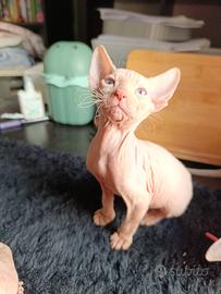 Sphynx, maschio,bianco bato 17/01/2026,tranquillo, cerca una famiglia seria e amorevole ? ? Sarà consegnato con 2 vaccini ? Sverminato ? Abituato perfettamente alla lettiera ? Mangia sia crocchette che carne bollita ? Carattere dolcissimo, calmo e coccolone - ideale anche per famiglia Genitori testati FIV e FeLV negativi (massima sicurezza sanitaria). È un gattino sano, curato con amore, abituato al contatto umano e pronto a portare tanta gioia in casa ?prezzo gia scontato 560 euro