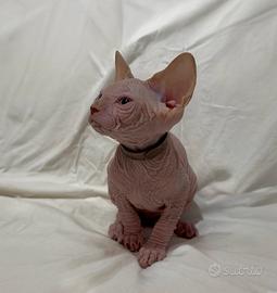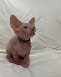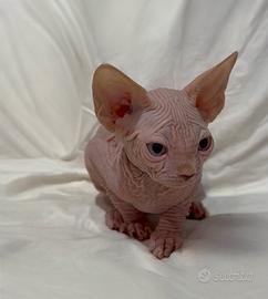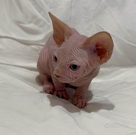 Pronto per l'affido alla nuova famiglia, cucciolo di Canadian Sphynx manto gomma color crema point. Il piccolo verrà ceduto con documentazione sanitaria completa, ciclo vaccinale, doppia sverminazione e Pedigree. I genitori sono visibile e testati Fiv/Felv e Hcm negativi. I nostri cuccioli crescono in ambito familiare, abituati al contatto con bambini ed altri animali. Per qualsiasi informazione non esitate a contattarci. Allevamento Riconosciuto con Affisso