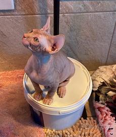 Da allevamento riconosciuto, disponibili alla prenotazione cuccioli di Sphynx. I gattini crescono in ambiente familiare, liberi di interagire con bambini e cani di piccola taglia. Saranno pronti per le nuove famiglie al compimento dei 90 giorni (Metà Maggio). Verranno ceduti con documentazione sanitaria, 2 vaccini, 2 sverminazioni, test feci/giardia negativo e Pedigree Enfi. Genitori testati FIV/FELV E HCM NEGATIVI!!!! Disponibili ultimi 3 maschi inDiverse colorazioni. La mostra famiia trasporta personalmente in tutta Italia.