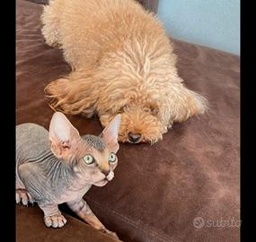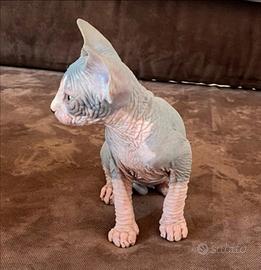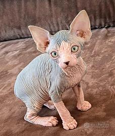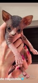 Trasporto in tutta Italia!!! Allevamento riconosciuto Dispone per la prenotazione, splendidi cuccioli di Sphynx manto gomma, in diverse colorazioni. I cuccioli verranno ceduti dopo i 90 giorni Metà Maggio e con: .Pedigree Ministeriale .Doppio ciclo vaccinale completato .Sverminazione effettuata .Copie dei test genetici dei genitori (FIV, FELV, HCM negativi) I cuccioli vivono in casa Fin dalla nascita vengono accuditi, coccolati e abituati alla socializzazione anche con bimbi piccoli e cani. Restiamo a disposizione per Ulteriori informazioni -disponibili 6 maschietti