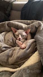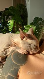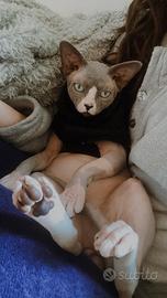 Ciao a tutti, io sono Costola ho 3 anni, vivo in provincia di Milano. Sono uno sphynx dal mantello Blu Mink bicolor del tutto privo di peli e ho gli occhi azzurri. Sono già padre di due cucciolate. Sono perfettamente in salute, la mia umana mi fa controllare periodicamente e mi ha fa fare tutti e vaccini e gli esami di cui ho bisogno. Sono un gatto molto dolce ed affettuoso, amo stare sotto le coperte, mangiare le mie crocche, ricevere un sacco di affetto e coccole, ma soprattutto amo le gattine, sono un vero Latin lover ? Se vi interesso non esitate a contattarmi! A presto aMicie