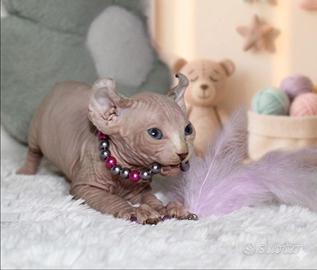 Splendida cucciolata di Sphynx, nati e cresciuti in un ambiente familiare ricco d'amore. Cerchiamo per loro famiglie speciali, pronte a farsi stravolgere la vita dalla loro incredibile dolcezza. La cucciolata è composta da 5 piccoli tesori: o 3 Femmine con occhi blu (sia versione Elf con le tipiche orecchie ricurve, sia Straight) di 46giorni pronte per metà Maggio o 1 Maschio Elf di 59 giorni pronto inizi maggio Verranno consegnati al compiersi dei 90 giorni I genitori sono di nostra proprietà e sono regolarmente testati e negativi per: o HCMo FIV / FELVo Herpes Viruso Clamidia Ogni cucciolo verrà consegnato con un protocollo sanitario completo: 1. Doppia vaccinazione (incluso richiamo e copertura specifica per Clamidia). 2. Ciclo di sverminazione completo (esteso anche per la giardia). 3. Libretto sanitario con certificato di buona salute Vogliamo che l'inserimento nella nuova casa sia perfetto. Ogni piccolo partirà con un ricchissimo Kit Cucciolo che comprende: o Cibo di alta qualità per i primi giorni. o Copertina con l'odore della mamma (per ridurre lo stress). o Giochi preferiti. o Maglioncino per proteggerlo dal freddo. E molto altro Per info,foto, video contattatemi al 3518552663 tramite WhatsApp . NB: Si prediligono contatti da parte di persone consapevoli dell'impegno e della particolarità della razza.