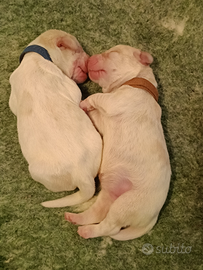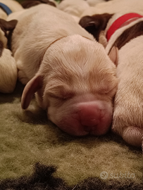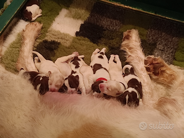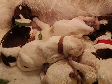 Cedo spinone italiano bianco arancio 1 maschio e 1 femmina nati il 29.1.25. Mamma Tiana LO2181538, papà Wagner LO1892589. I cani verranno ceduti a 60 GG con sverminazioni, vaccinazioni, certificato taglio coda e pedigree.