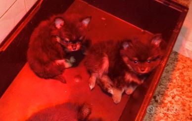 Si tratta di quattro esemplari di Spitz di Pomerania Black and Tan sono tutti esattamente come la mamma mentre invece il papà è un esemplare con pedigree biondo molto molto peloso. Purtroppo però i piccoli non potranno avere i pedigree.