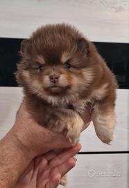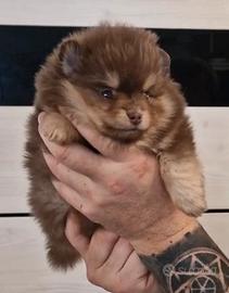 Spitz di Pomerania femmina cioccolato tan pedigree EXPO COLORE molto raro