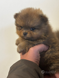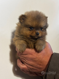 Cucciolo di Spitz di Pomerania con pedigree ENCI disponibile da subito ,verrà ceduta con due sverminazioni due vaccini microchip libretto sanitario e certificato di buona salute rilasciato dal veterinario genitori visibili e di mia proprietà