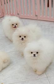 Splendido cucciolo maschio di SPITZ di POMERANIA 2 MESI DI VITA Genitori dal manto bianco, in mio possesso e pertanto visibili. In foto i genitori e su richiesta anche bisnonni materni. La mamma linea Coreana e Russa ed il papà di linea Russa al garrese 22/23 centimetri entrambi con te DNA depositato. Caratteristiche perfette ! Dolcissimi, affettuosi ,giocherelloni e sempre alla ricerca di coccole e attenzioni pertanto adatti a crescere in famiglia con bambini. Il cucciolio verrà consegnato con Pedigree Enci, MICROCHIP, 2 vaccini e due somministrazioni di vermifugo. Da adulto peso intorno 2.200/ 2,500 Kg. Per chi fosse interessato/a mi contatti ESCLUSIVAMENTE tramite telefono sul 3476297224.Non rispondo ai messaggi watsap o email. No perditempo.