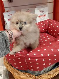 Disponibile bellissimo cucciolo di Spitz di Pomerania Merle esotico.(Disponibile anche la femminuccia nera con punti bianchi)