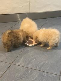 Meravigliosi cuccioli di Spitz tedesco di Pomerania mini toy. Disponibili due maschi e una femmina bianco crema come da foto, nati in ambiente familiare da mamma bianca e papà fulvo visibili . I batuffolini sono bellissimi, ipertipici e perfetti, quasi completamente svezzati ed abituati a usare traversina e uscire giardino; vivaci e dolcissimi, cercano una famiglia che li sappia curare e amare, si cedono a prezzo interessante con possibilità di consegna a metà strada. Per qualsiasi info e altre foto, chiamate il 333/4200632.