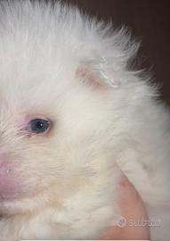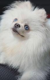 Disponibile maschio di spitz di pomerania esotico con colorazione total white occhi blu anche da adulto il cucciolo e nato il 1 gennaio viene ceduto con ciclo vermifugo completo 2 vaccini, microchip con relativa iscrizione all'anagrafe canina. il cucciolo e di un livello altissimo prestigioso per chi vuole un esclusivita ci sono pochissimi soggetti come lui da adulto sara max 2 kg