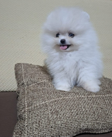 Il cucciolo è una miniatura, colore bianco, muso cortissimo,