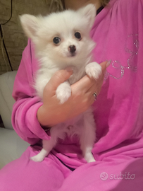 Cucciola di Spitz nana femmina 3 mesi e mezzo bianca sverminata vaccinata Microchip libretto sanitario di buona salute da adulta peserà intorno ai 2 kg