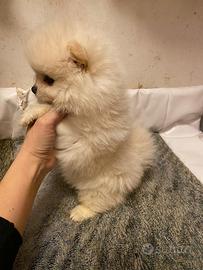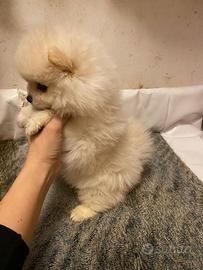 Disponibili cuccioli di Spitz nano di Pomerania colore bianco o crema Maschi e femmine Hanno due mesi Li cedo con il libretto sanitario, il microchip, vaccinati e sverminati Genitori visibili Nati in casa Abituati a sporcare sulla traversina Possibilità di inviare ulteriori foto e video su WhatsApp Per maggiori informazioni o appuntamento potete contattarmi al 331/4355320