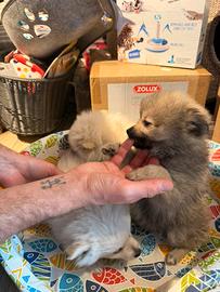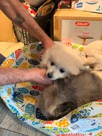 Spitz piccolo cuccioli di 2 mesi e mezzo, ancora disponibili 2 maschi grigi , una femmina grigia ed un maschio panna, completi di tutti i vaccini chip e sverminazioni, disponibili subito e visibili senza impegno nel nostro negozio di Urgnano BG