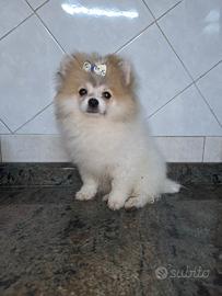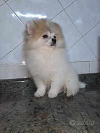 Dispongo cucciolo maschietto di spitz pomerania di colore bianco e fulvo. Il piccolo ha 3 mesi sara ceduto già svezzato sverminato con primo vaccino e libretto sanitario. X qualsiasi informazione contattatemi in privato