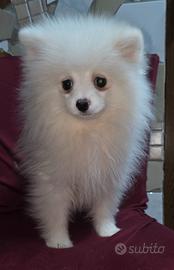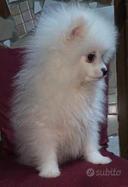Dispongo cucciolo maschietto di spitz pomerania colore bianco di 4 mesi colore bianco. Il piccolo sarà ceduto già svezzato sverminato con primo vaccino e libretto sanitario. X qualsiasi informazione contattatemi in privato o in privato