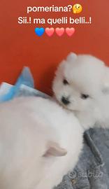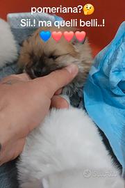 Cuccioli di spitz pomeriana nati in casa Da mamma pomeriana 22cm bianco Papà pomeriana 19cm crema Sono 3 femminucce ed un maschietto I cuccioli sono nati il 1/3/2026 verranno consegnati a 60 giorni con ciclo sverminazione 2 vaccinazioni Libretto sanitario Microchip Iscrizione anagrafe canina ASL2nord Attestato di buona salute Per info e prenotazioni contattateci al 3715448131