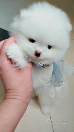 : Esclusiva Cucciola di Pomerania Bianco Puro Disponibile per una famiglia selezionata una splendida cucciola di Volpino di Pomerania (Spitz Tedesco Nano) dal raro mantello bianco ottico. Nata e cresciuta in ambiente familiare con cure maniacali, è un esemplare unico per morfologia e carattere.Con Pedigree ENCI: Unica garanzia ufficiale di purezza della razza. DNA Depositato dei genitori , vaccini sverminazione libretto sanitario MICROCHIP attestato di buona salute rilasciato dal veterinario di fiducia e contratto cessione ANIMALE Trasporto tutta Italia